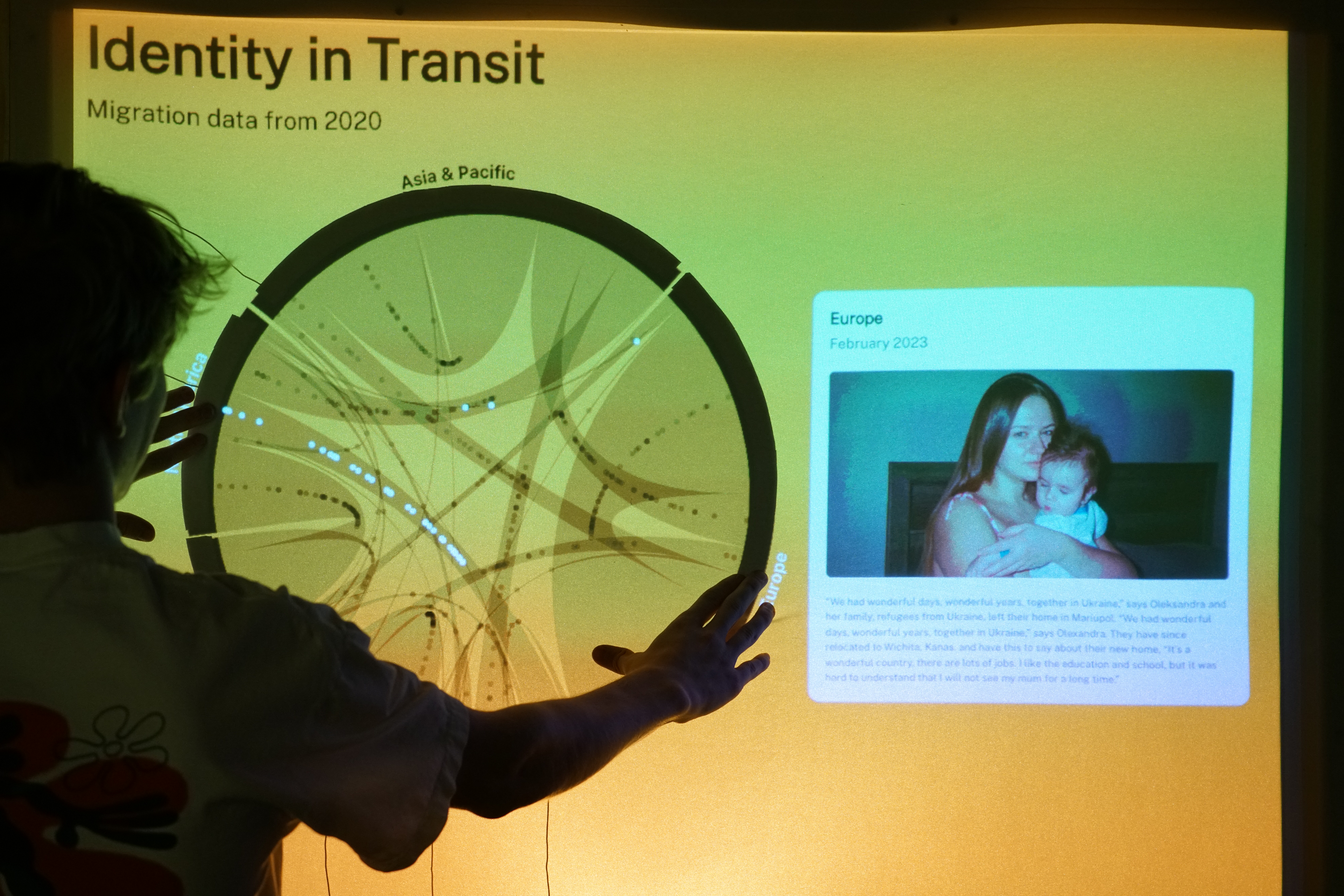 An interactive touch board that displays migration data between world regions and the personal stories that live within that data. This project was completed in collaboration with the International Rescue Committee, and many interviews with employees and clients of the IRC led us to this design solution. The project aims to reveal the human stories behind migration data, shedding light on refugees' personal journeys and promoting empathy and understanding between otherwise insulated communities. We envisioned the board existing in the SLC International Airport or another high-traffic travel hub. Modeled in Rhino 7 and rendered in Keyshot 12.